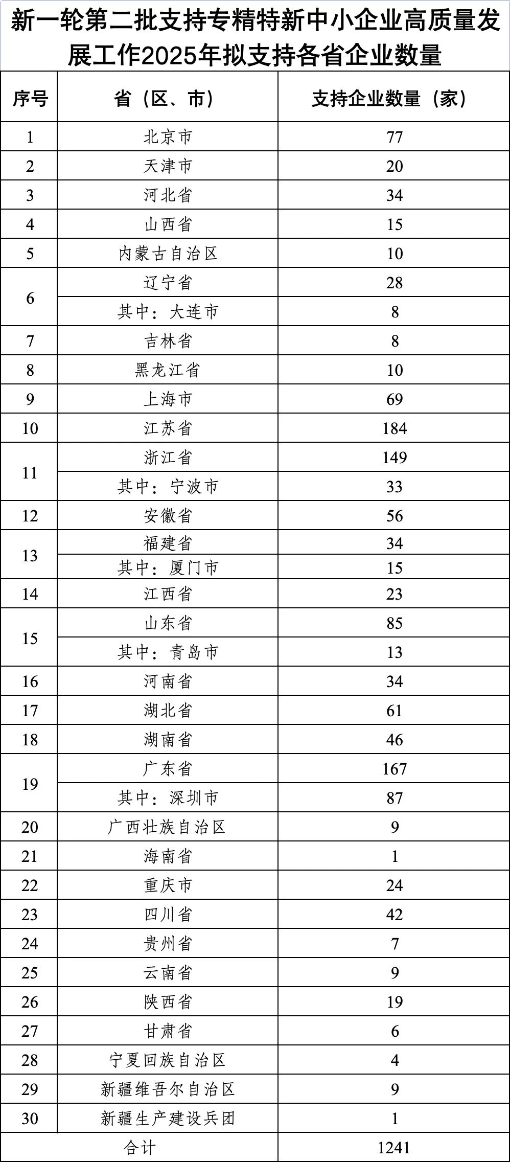附件:1.新一輪第二批支持專精特新中小企業高質量發展工作2025年擬支持各省企業數量.et