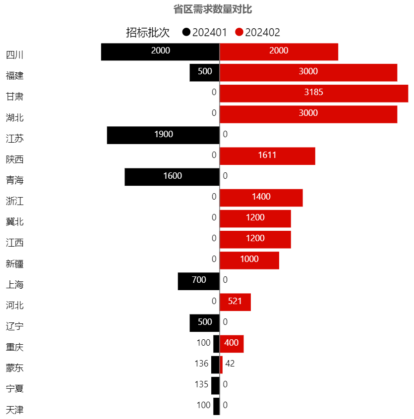 主要的需求量來自四川、湖北、安徽、福建等省份。