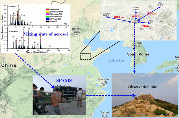 南京信息工程大學銀燕教授團隊,于2017年夏季在泰山玉皇頂開展氣溶膠綜合觀測實驗,首次使用單顆粒飛行時間質(zhì)譜儀(SPAMS,廣州禾信)研究了泰山頂氣溶膠混合狀態(tài)及其粒徑分布特征,并探討氣溶膠混合狀態(tài)對新粒子增長過程的影響。