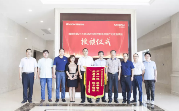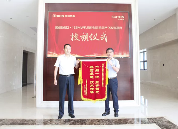 2019年8月1日,江蘇國信協(xié)聯(lián)能源有限公司總經(jīng)理宗偉剛、總工程師芮志清、檢修部部長談三勤、熱控專工蔣勇一行親赴科遠(yuǎn)智慧,就國信協(xié)聯(lián)2×135MW機(jī)組控制系統(tǒng)國產(chǎn)化改造項(xiàng)目,授予科遠(yuǎn)智慧“產(chǎn)品一流、服務(wù)領(lǐng)先、品質(zhì)卓越、技術(shù)精湛”錦旗。科遠(yuǎn)智慧董事長劉國耀、總裁胡歙眉、控制系統(tǒng)工程中心總經(jīng)理方正、江蘇項(xiàng)目部經(jīng)理姚風(fēng)偉、主任工程師徐龍乾、銷售經(jīng)理王琦等出席授旗儀式。