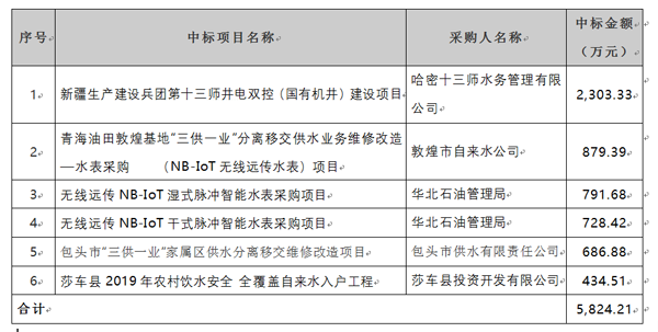 本次公司中標上述多個項目,再次驗證了公司在物聯網、智慧農業節水等領域的綜合實力,上述項目的順利實施將進一步穩固公司在NB-IoT物聯網表、農業高效節水等領域的市場占有率和影響力,增強公司的市場競爭力和品牌知名度。