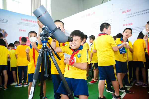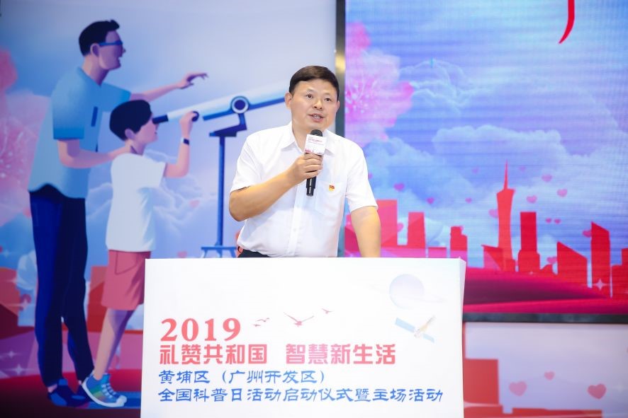 9月17日上午,以“禮贊共和國、智慧新生活”為主題的黃埔區、廣州開發區2019年全國科普日活動啟動儀式暨主場活動在黃埔區九龍第二小學拉開帷幕。廣州市科學技術協會副巡視員程志鵬,廣州市科學技術協會科普部部長黃增豪、新龍鎮鎮長李貴清、副鎮長何良新、黃埔區科學技術協會主席張景銘、廣州市生態環境局黃埔區分局局長李應生、黃埔區教育局副調研員黃方亮、黃埔區科學技術協會秘書長李雪光、黃埔區九龍第二小學校長周俊勇、廣州開發區科技金融服務中心總經理邢寶偉、黃埔區公安分局、黃埔區禁毒委員會辦公室,黃埔區市場監督管理局、黃埔區中醫藥學會等單位以及粵嵌通信、博冠光電、香雪制藥、白云山中一藥、威凱檢測、享學教育、直通教育等36家科技企業代表、區各街道代表、九龍第二小學師生共1000余人參加。