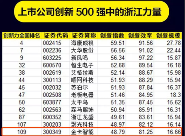 近日,2019年中國上市公司創新指數500強與2019年浙江省百強企業榜單相繼發布,金卡智能均榜上有名。