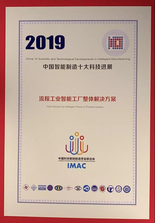 浙江中控技術股份有限公司“流程工業智能工廠整體解決方案”入選“2019中國智造十大科技進展”。該獎項旨在世界范圍內遴選出智能制造領域的科技突破、關鍵技術難題的解決方法、對企業高效發展和生態環境改善產生重大貢獻的應用案例,以及對行業和國家創新具有貢獻的科技進展。
