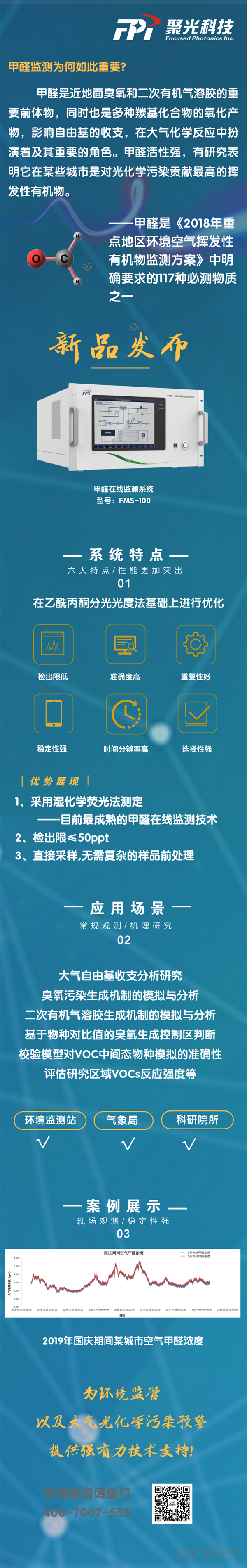 聚光科技(杭州)股份有限公司重磅推出甲醛在線監(jiān)測系統(tǒng)(型號:FMS-100),為環(huán)境監(jiān)管以及大氣光化學(xué)污染預(yù)警再添一款利器!