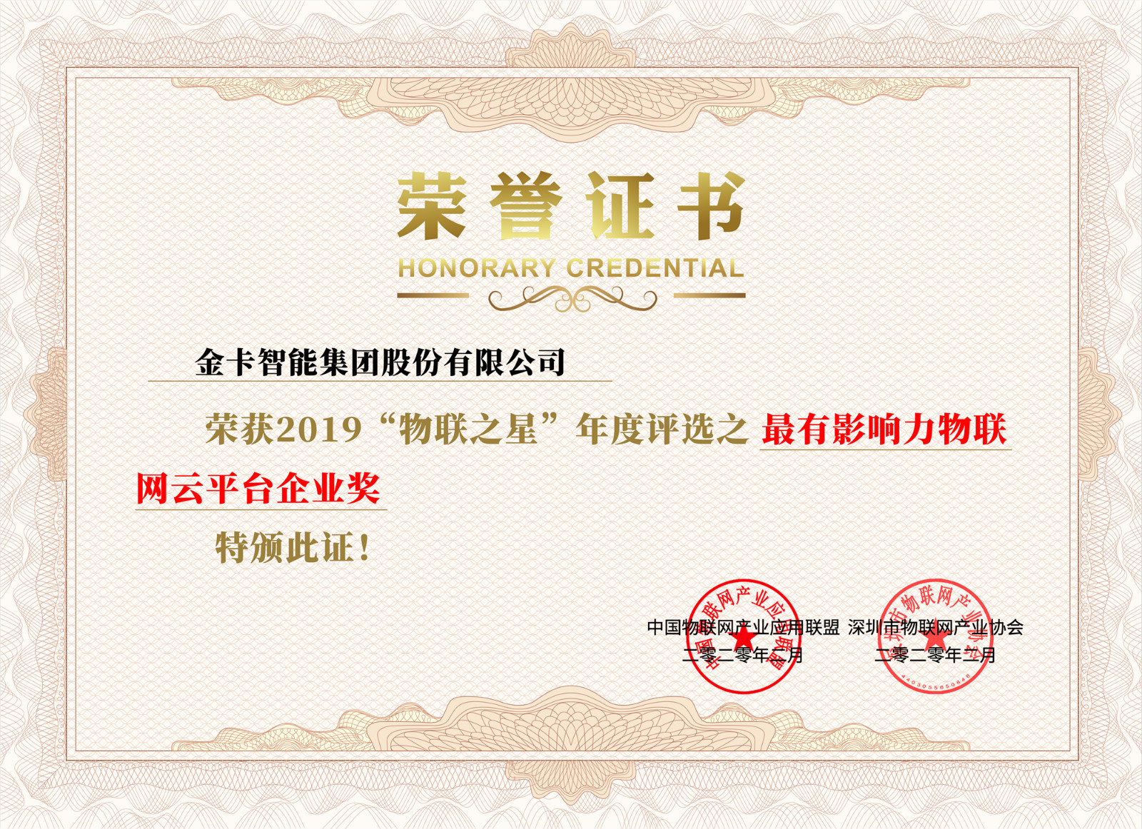 2月25日,由中國物聯(lián)網(wǎng)產(chǎn)業(yè)應用聯(lián)盟、深圳市物聯(lián)網(wǎng)產(chǎn)業(yè)協(xié)會主辦、物聯(lián)傳媒承辦的2019物聯(lián)之星中國物聯(lián)網(wǎng)行業(yè)年度評選落下帷幕,金卡智能斬獲“最具投資企業(yè)獎”、“最有影響力物聯(lián)云平臺企業(yè)獎”、“最佳智慧能源應用方案獎”,楊斌董事長榮獲“年度卓越人物獎”,成為獲獎最多的企業(yè)之一。