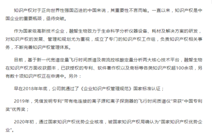 這些都是國(guó)家對(duì)融智生物長(zhǎng)久以來堅(jiān)持自主研發(fā)、堅(jiān)持知識(shí)產(chǎn)權(quán)保護(hù)的高度認(rèn)可,也充分說明了融智生物在知識(shí)產(chǎn)權(quán)創(chuàng)造、管理、運(yùn)用和保護(hù)方面所取得的成效。