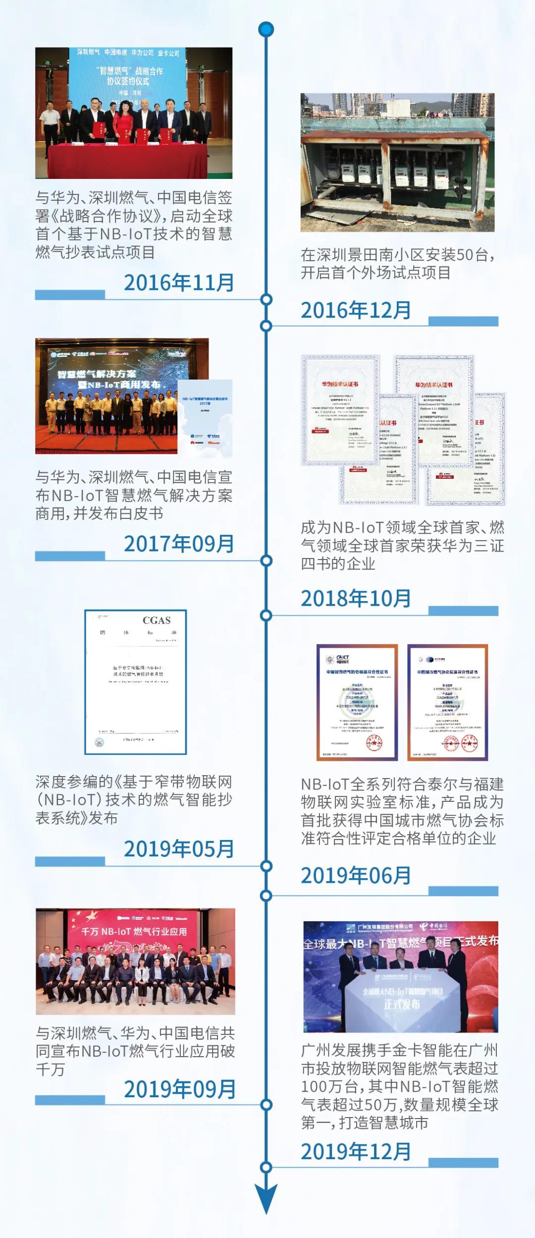 NB-IoT技術作為5G分支之一,成為推動行業(yè)數字化轉型利器。金卡智能從技術研發(fā)、標準制定、市場推動、生態(tài)建設等方面積極促進NB-IoT技術在燃氣行業(yè)的應用。2016年7月,第一臺NB-IoT智能燃氣表在華為實驗室完成測試,隨著基于NB-IoT技術在燃氣行業(yè)生態(tài)建設不斷深入,NB-IoT智慧燃氣解決方案在國內外得以廣泛部署。