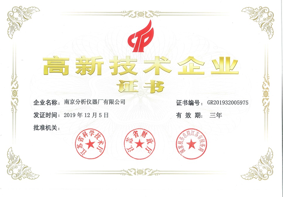 經(jīng)過(guò)江蘇省科學(xué)技術(shù)廳、江蘇省財(cái)政廳和國(guó)家稅務(wù)總局江蘇省稅務(wù)局的綜合評(píng)定,南京分析儀器廠有限公司再次獲得國(guó)家高新技術(shù)企業(yè)稱號(hào)。