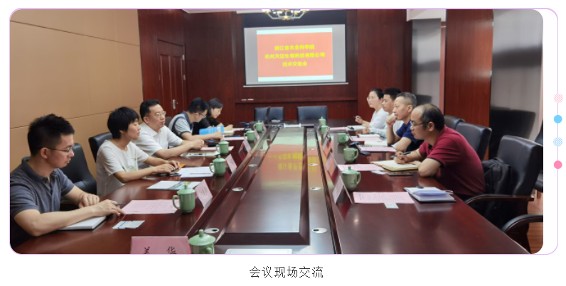 天邁生物是浙江省農業科創園首批入駐企業。在如何“充分發揮科研單位和企業優勢,走好科技成果轉化的最后一公里”背景下,202065日上午,浙江省農業科學院楊院主持召開了 “浙江省農業科學院/杭州天邁生物科技有限公司技術交流會”。與會人員有:省農科院的王主任、錢主任、楊主任、何博士、姜博士及以天邁生物董事長趙澎濤為首的企業方一行五人。