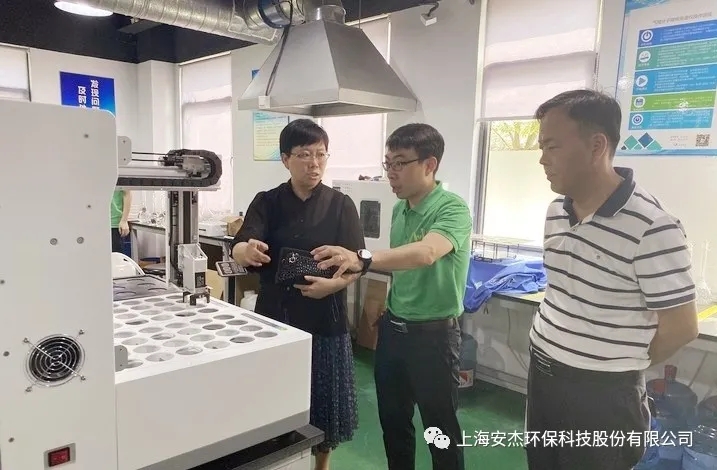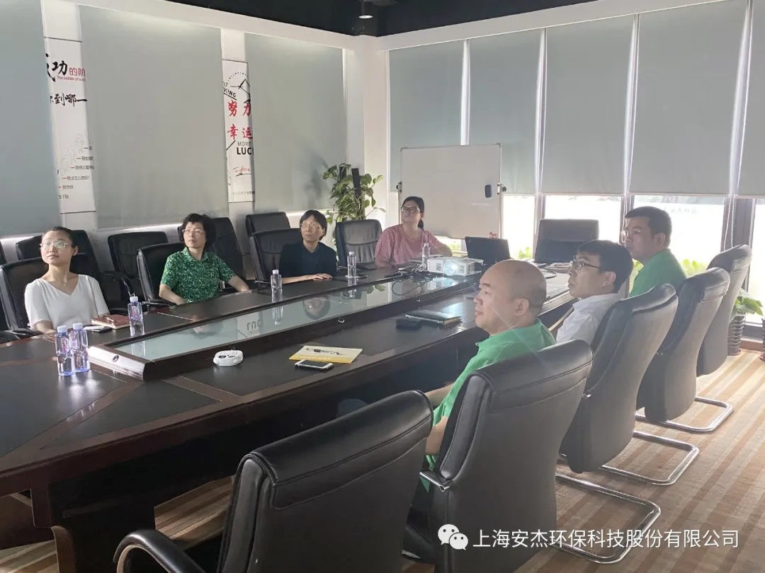 2020年7月22日,寶山區生態環境局局長石純、寶山區環境監測站站長潘飛飛一行到上海安杰環保科技股份有限公司進行調研。
