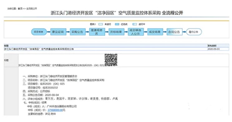 禾信儀器中標浙江頭門港經濟開發區“潔凈園區”空氣質