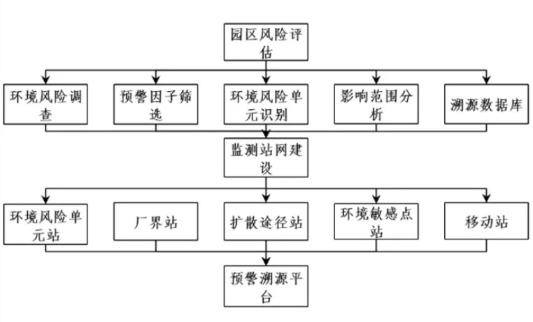 參考《化工園區有有害氣體環境風險預警體系建設技術導則(征求意見稿)》進行環境風險評估,為環境風險預警體系建設提供基礎。以分布式多通道快速質譜技術為核心,結合便攜式質譜監測儀、無機惡臭監測儀、大氣預濃縮氣相色譜質譜聯用儀和移動質譜走航監測系統等,建立以質譜設備為主的預警溯源監氵則站網,實現園區靈敏、全面、快速監測響應。落實測管評聯動的工作機制,結合一體化信息化平臺,提高園區精細化管理水平。