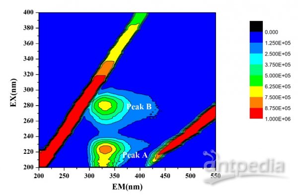 采用天美 FL970Plus 測得的河水三維熒光光譜圖