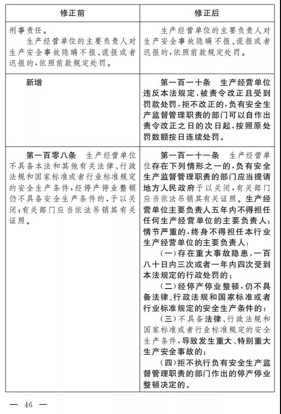 三十二、增加一條,作為第一百一十條:“生產(chǎn)經(jīng)營(yíng)單位違反本法規(guī)定,被責(zé)令改正且受到罰款處罰,拒不改正的,負(fù)有安全生產(chǎn)監(jiān)督管理職責(zé)的部門可以自作出責(zé)令改正之日的次日起, 按照原處罰數(shù)額按日連續(xù)處罰?!?/span>