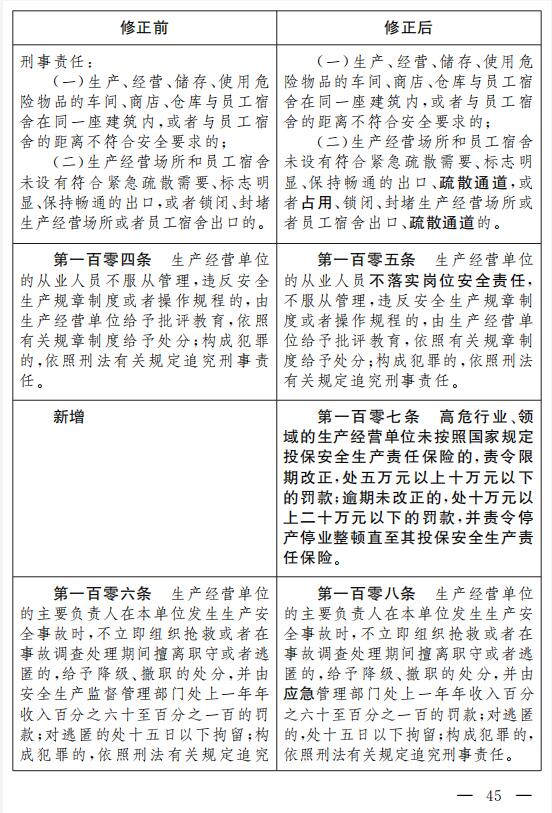 三十、將第一百零四條改為第一百零五條,修改為:“生產(chǎn)經(jīng)營(yíng)單位的從業(yè)人員不落實(shí)崗位安全責(zé)任,不服從管理,違反安全生產(chǎn)規(guī)章制度或者操作規(guī)程的, 由生產(chǎn)經(jīng)營(yíng)單位給予批評(píng)教育,依照有關(guān)規(guī)章制度給予處分;構(gòu)成犯罪的,依照刑法有關(guān)規(guī)定追究刑事責(zé)任?!?/span>