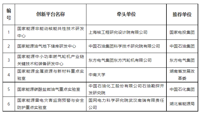 十四五”第一批國家能源研發(fā)創(chuàng)新平臺名單