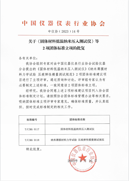 關于《固體材料低溫納米壓入測試儀》等2項團體標準立