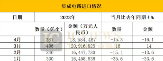 根據官方海關數據,中國的芯片進口在2023年前五個月下降了近20%。海關總署公布的數據顯示,1-5月,我國集成電路(IC)進口1865億件,同比下降19.6%,略微收窄前四個月21.1%的降幅。在五個月期間,芯片進口總值下降24.2%至1319億美元。