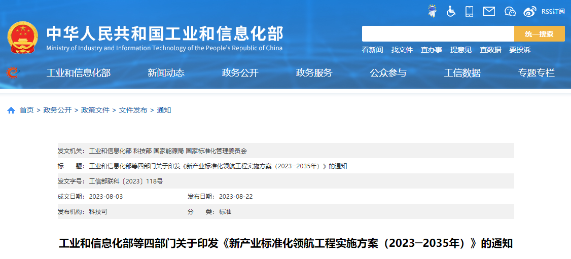工業和信息化部等四部門關于印發《新產業標準化領航工程實施方案(20232035年)》的通知