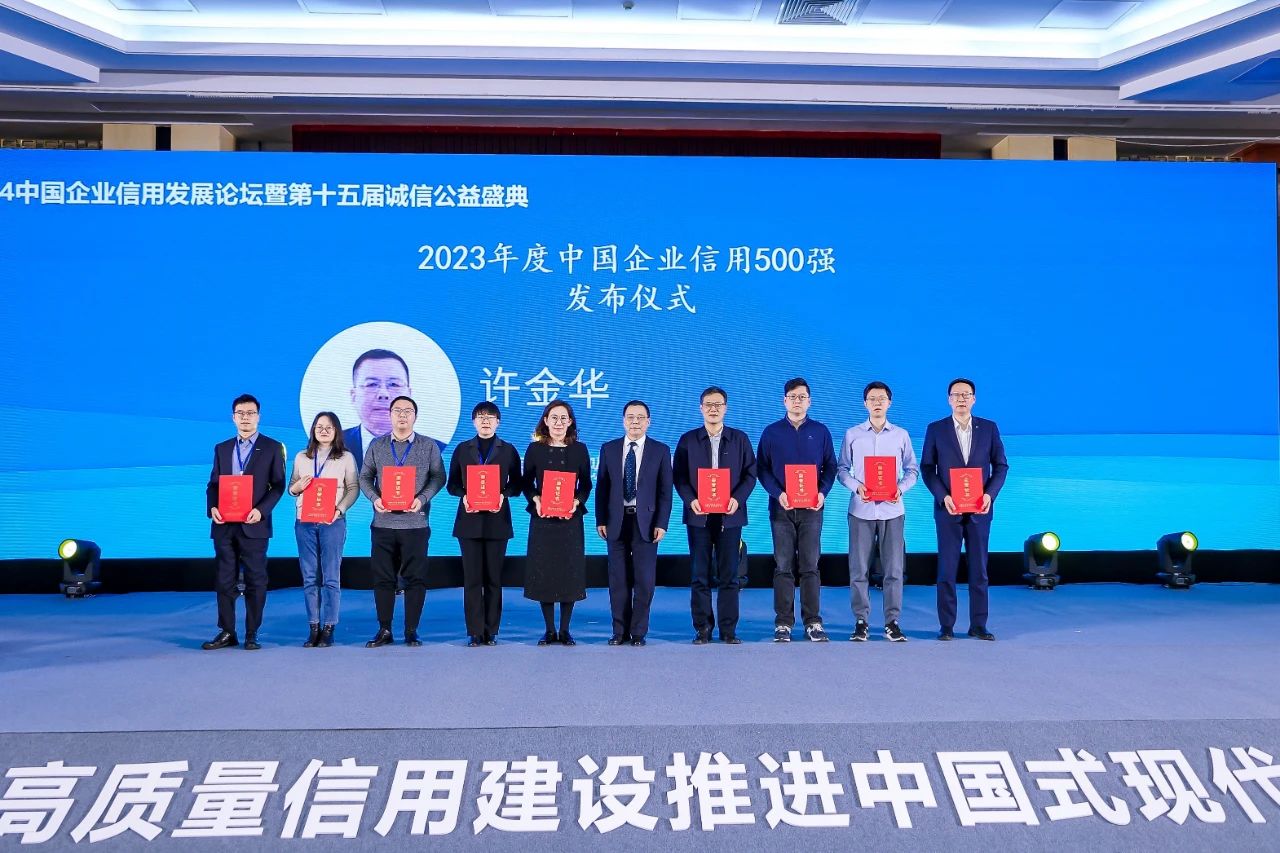 1月21日,2024中國企業信用發展論壇暨第十五屆誠信公益盛典在北京成功召開。中國企業改革與發展研究會常務副會長許金華在論壇上發布了2023年度中國企業信用500強和中國上市公司信用500強。