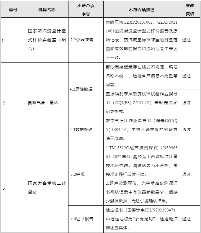 現場隨機抽查150份受檢機構存檔證書(報告)及相應原始記錄,發現存在人員培訓不足、原始數據有誤等不符合項,未發現嚴重違法違規行為。