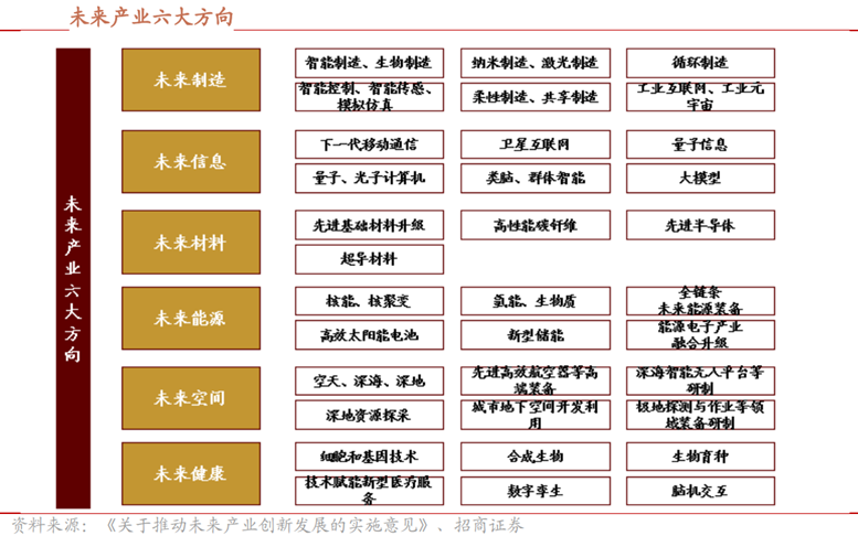 ●未來產(chǎn)業(yè):1月29日,7部門聯(lián)合發(fā)布《關(guān)于推動未來產(chǎn)業(yè)創(chuàng)新發(fā)展的實施意見》,其中提出“要重點推進(jìn)未來制造、未來信息、未來材料、未來能源、未來空間和未來健康六大方向產(chǎn)業(yè)發(fā)展。”
