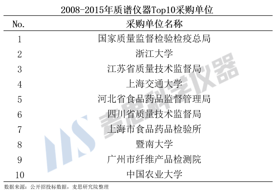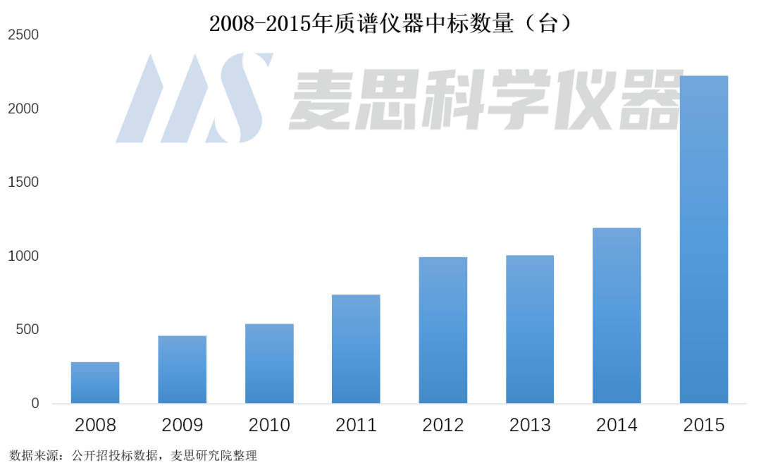 為了深入挖掘質譜儀器的真正潛在需求,麥思研究院對2008-2015年公開招投標數據進行了詳細分析。