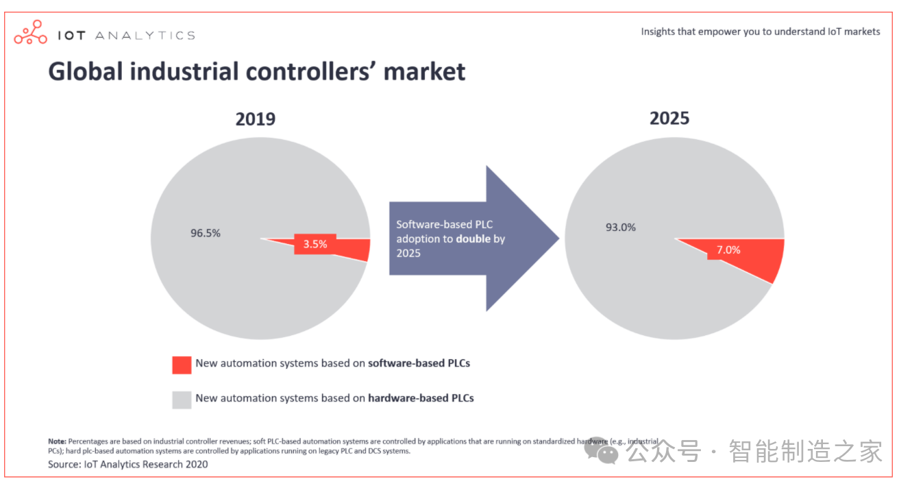 軟PLC作為自動(dòng)化領(lǐng)域的新星,正逐漸受到工業(yè)生產(chǎn)的青睞,特別是在日益定制化和復(fù)雜化的生產(chǎn)需求背景下。軟PLC通過(guò)將硬PLC的功能集成到軟件包中,運(yùn)行于通用工控電腦上,形成了高性能的可編程自動(dòng)化控制器(PAC)。其優(yōu)越之處在于,它能夠根據(jù)具體應(yīng)用進(jìn)行定制開發(fā),實(shí)現(xiàn)復(fù)雜的控制邏輯,并利用PC的強(qiáng)大力量和多樣化的軟件資源,達(dá)成更快速、精確的控制效果。盡管短期來(lái)看,硬PLC的市場(chǎng)份額因用戶習(xí)慣和風(fēng)險(xiǎn)規(guī)避心理難以被迅速取代,但從長(zhǎng)遠(yuǎn)看,軟PLC市場(chǎng)份額預(yù)計(jì)將持續(xù)增長(zhǎng)。據(jù)預(yù)測(cè),到2025年,基于軟PLC的自動(dòng)化系統(tǒng)占比將翻番。