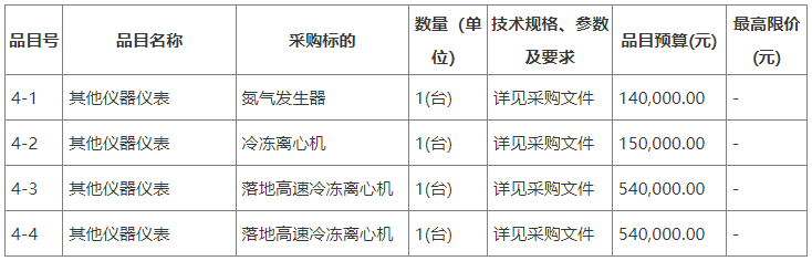 合同包4(氮氣發生器、冷凍離心機、落地高速冷凍離心機):