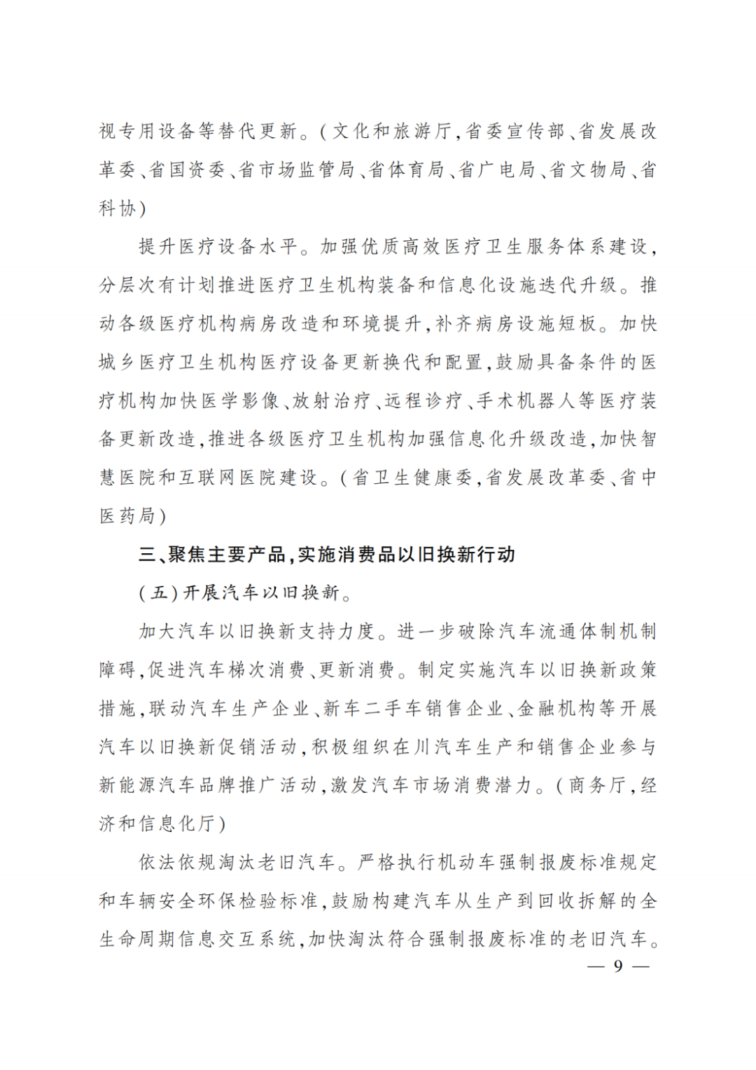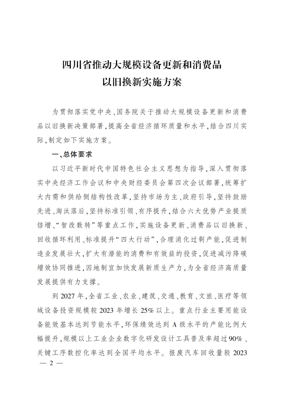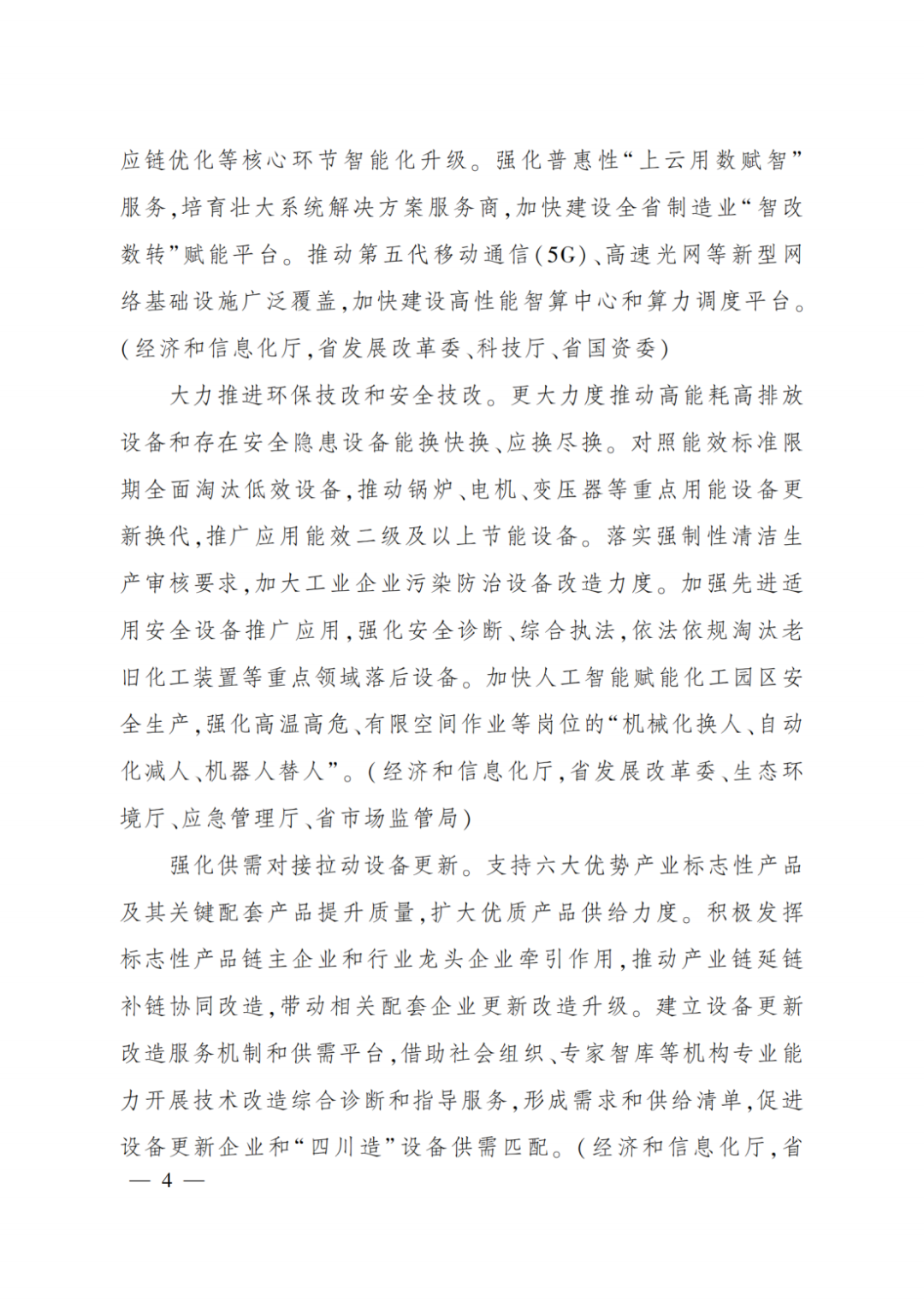 四川省人民政府關(guān)于印發(fā)《四川省推動大規(guī)模設(shè)備更新和消費品以舊換新實施方案》的通知