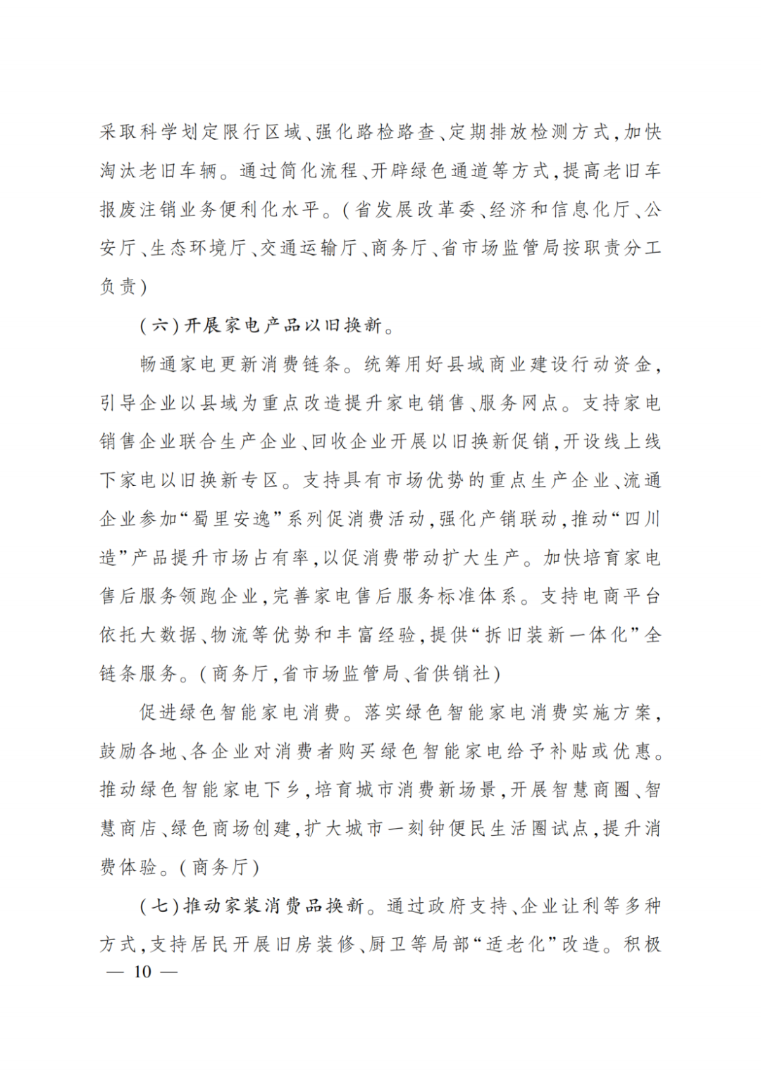 現(xiàn)將《四川省推動大規(guī)模設(shè)備更新和消費品以舊換新實施方案》印發(fā)給你們,請認(rèn)真貫徹落實。
