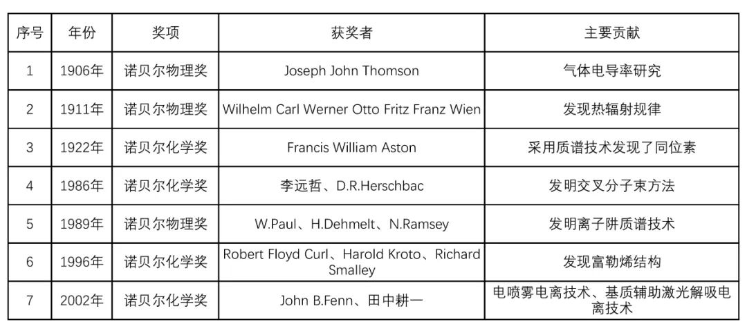 表1 與質譜原理及技術發展相關的諾貝爾獎項