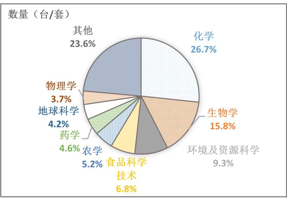 圖3 不同學科領域質譜儀器數量分布圖