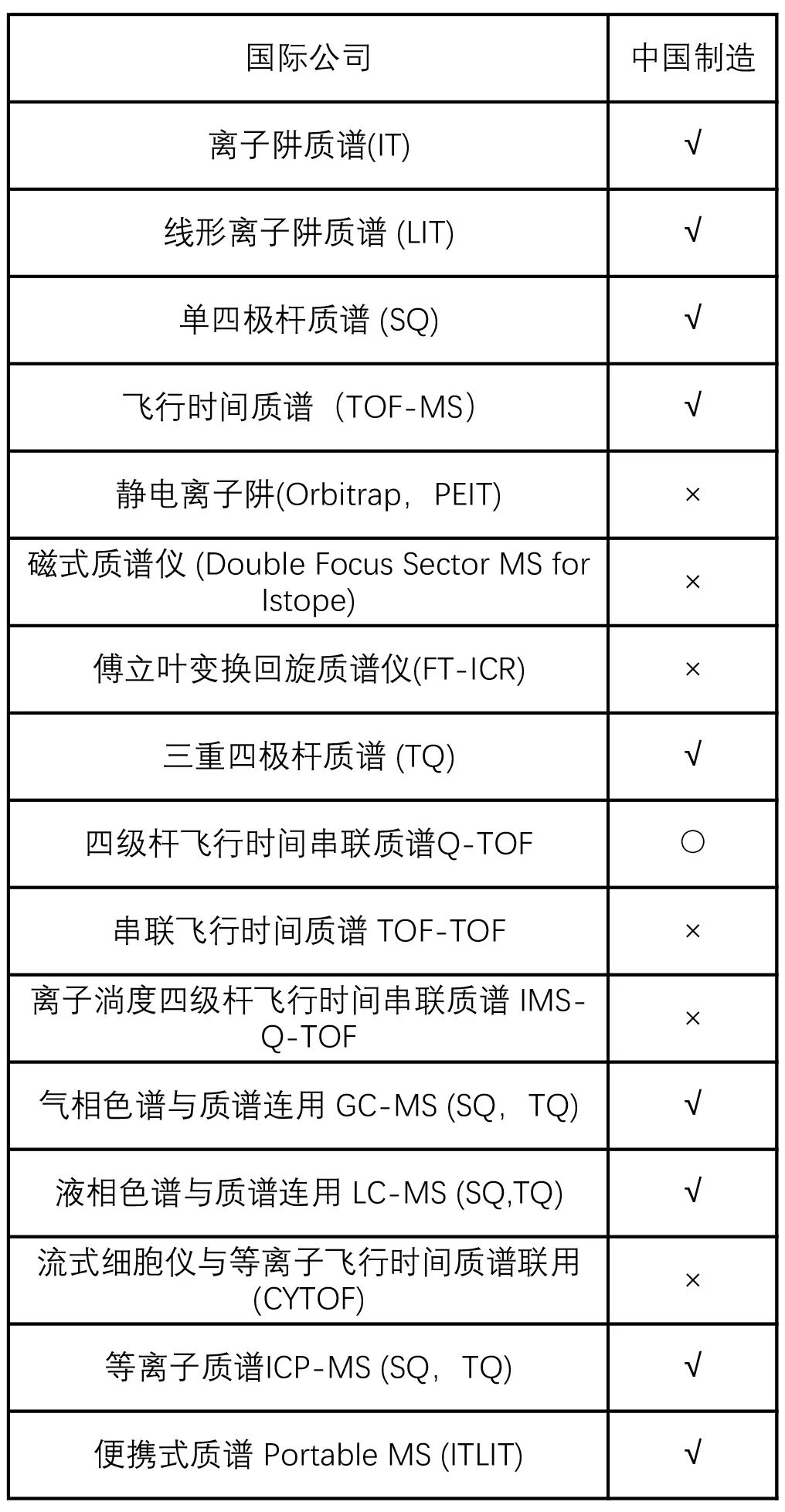 表7 國內外質譜儀器產品類型對比