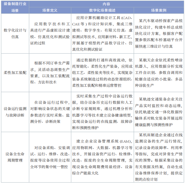 表2 裝備制造行業(yè)數(shù)字化轉(zhuǎn)型典型場(chǎng)景內(nèi)容