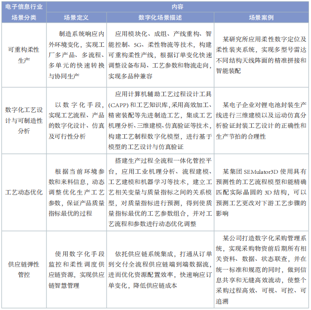 表3 電子信息行業(yè)數(shù)字化轉(zhuǎn)型典型場(chǎng)景內(nèi)容