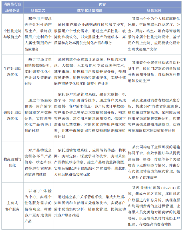 表 4 消費(fèi)品行業(yè)數(shù)字化轉(zhuǎn)型典型場(chǎng)景內(nèi)容