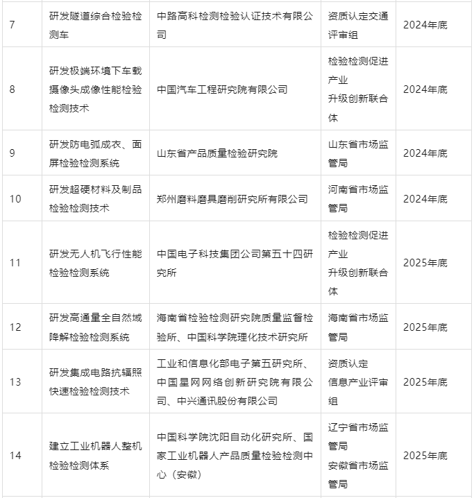 1. 檢驗檢測促進產業(yè)優(yōu)化升級行動重點項目