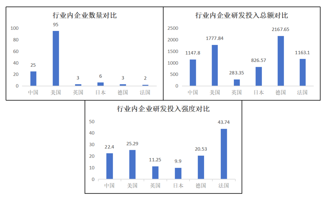 綜上,與主要國家相比,中國科技領軍企業數量較多、研發投入總額較高,具有體量優勢。但中國目前仍缺乏具有世界尖端水平的科技領軍企業,且整體創新強度不高,對科技創新的投入程度還有差距。此外,中國科技領軍企業在各個指標上的表現均不及美國企業,即便是引以為傲的體量優勢仍與美國企業存在著一定的差距。