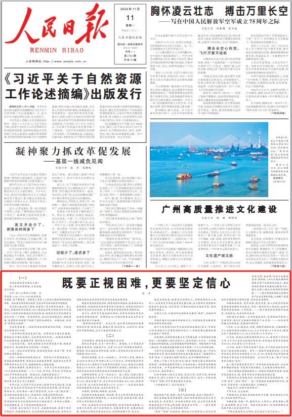 當前我們遇到的困難,是發(fā)展中的問題、轉(zhuǎn)型中的陣痛,經(jīng)過努力是完全可以克服的。
