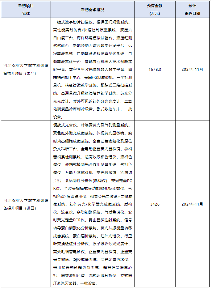 河北農(nóng)業(yè)大學11月儀器采購意向匯總