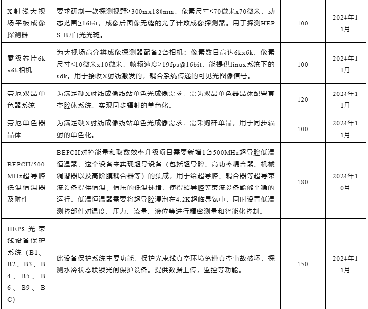 近日,中國科學院高能物理研究所發布25項儀器設備采購意向,預算總額達0.98億元,涉及CSNS-II逆幾何分子振動譜儀分析晶體、高速細線楔形鍵合機、背散射譜儀束線前端鋼屏蔽體、X射線大視場平板成像探測器等,預計采購時間為2024年10月~2025年1月。