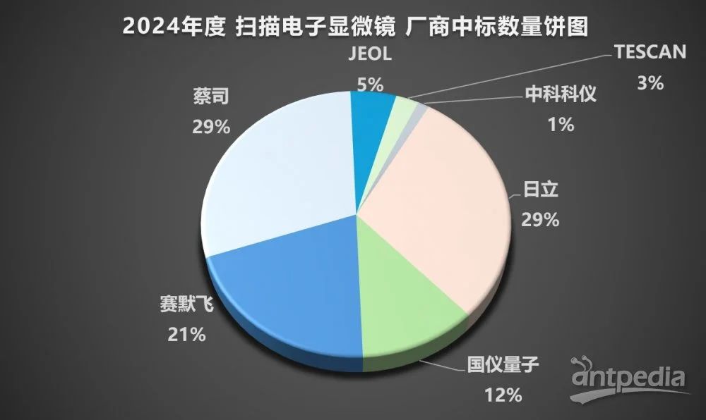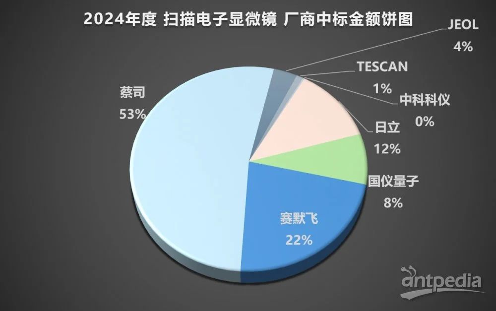 2024年度掃描電子顯微鏡主要品牌包括蔡司、賽默飛、國(guó)儀量子、日立、JEOL等。總金額為3.45億元,占總金額的96%。