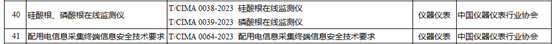 由中國儀器儀表行業(yè)協(xié)會發(fā)布的3項團體標準T/CIMA 0038-2023《硅酸根在線監(jiān)測儀》、T/CIMA 0039-2023《磷酸根在線監(jiān)測儀》和T/CIMA 0064-2023《配用電信息采集終端信息安全技術(shù)要求》被納入公示名單。