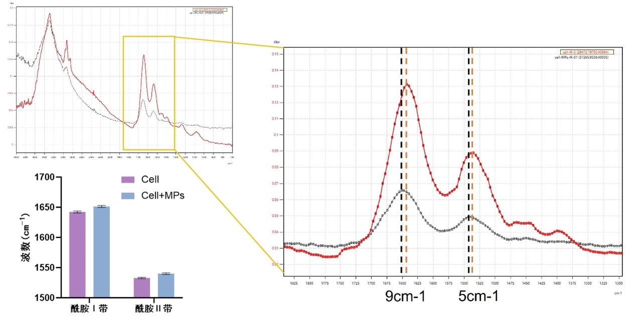 圖3 使用顯微紅外光譜表征單個巨噬細(xì)胞蛋白與微納塑料的相互作用