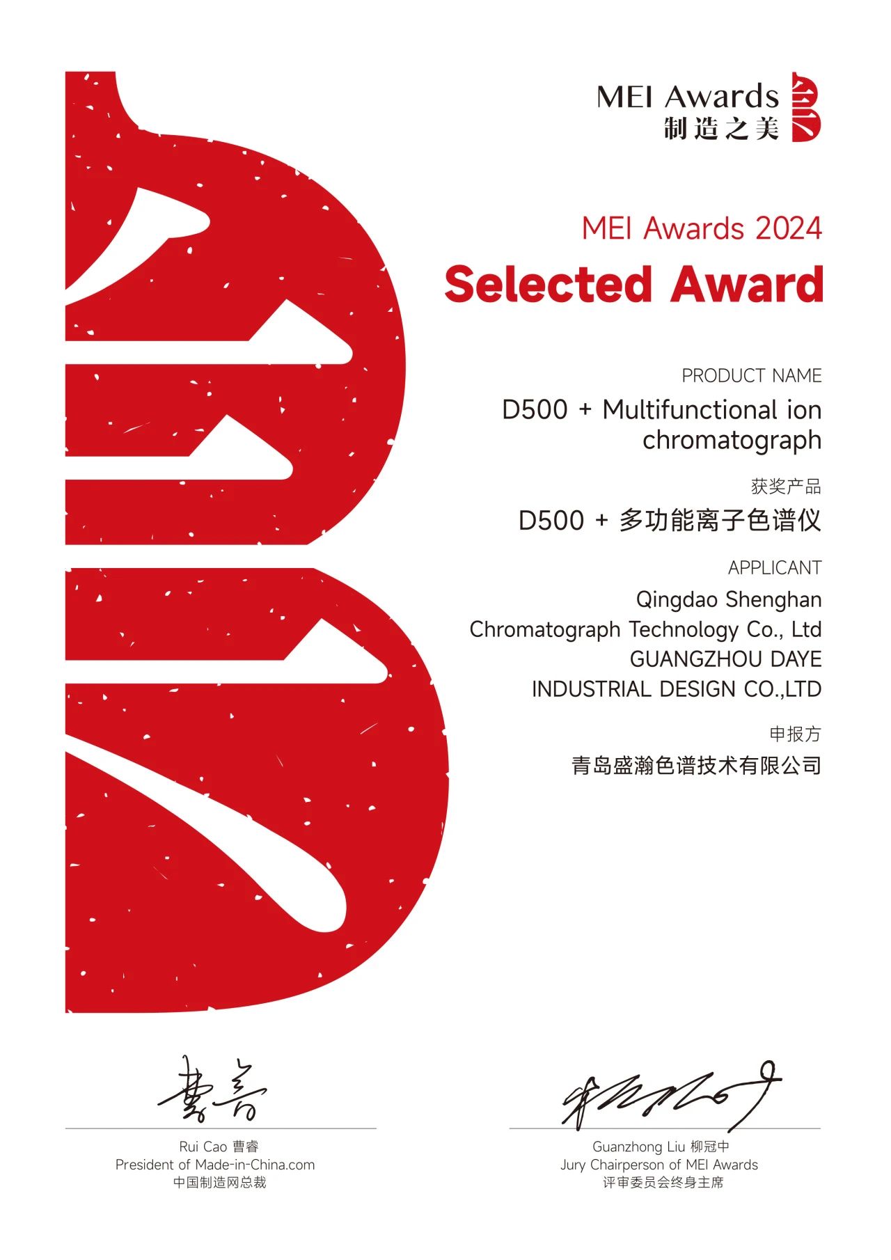 繼斬獲德國紅點設計大獎后,盛瀚再獲殊榮CIC-D500+多功能色譜儀榮獲2024中國制造之美獎贏得國內外雙重認可。