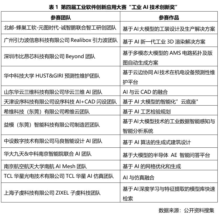 第四屆工業(yè)軟件創(chuàng)新應(yīng)用大賽以“AI+工業(yè)軟件”為主題,涌現(xiàn)出一大批優(yōu)秀的AI創(chuàng)新與應(yīng)用項目,有98家隊伍參與比賽,有41支隊伍入圍決賽,13支隊伍獲得技術(shù)創(chuàng)新獎,13支隊伍獲得應(yīng)用場景創(chuàng)新獎。
