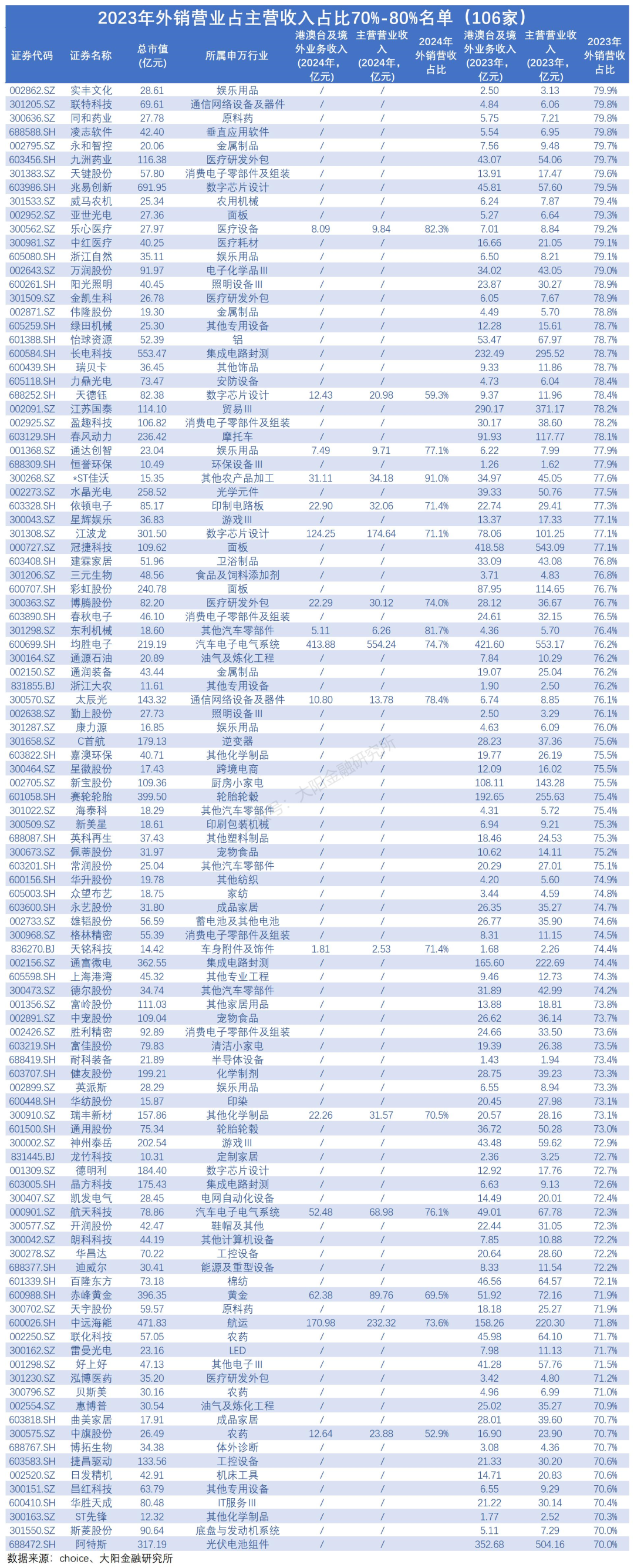 基于此,梳理了港澳臺及境外業務收入占比超過50%的公司名單,共600家,分比例及年度情況列示。名單有點長,建議先保存或分享轉發,共渡難關!