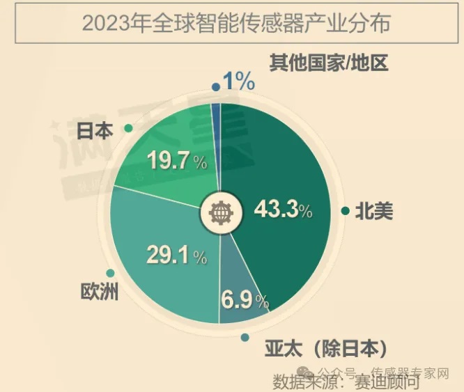 據(jù)工信部下屬產(chǎn)業(yè)研究機構(gòu)賽迪顧問數(shù)據(jù)顯示,以美國為主導(dǎo)的北美地區(qū)占據(jù)全球智能傳感器產(chǎn)業(yè)產(chǎn)能的43.3%,是占比最高的地區(qū),其次歐洲占比29.1%,日本占比19.7%,亞太地區(qū)(除日本)占比6.9%,其他國家/地區(qū)占比1%。在產(chǎn)能方面,歐美地區(qū)在智能傳感器領(lǐng)域的產(chǎn)能占據(jù)全球主要地位。(詳細數(shù)據(jù)參看《3644.7億元,中國是全球傳感器“小”國!發(fā)展刻不容緩!》)